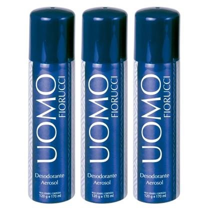 Contém ativo que inibe o crescimento bacteriano nas axilas e uma fragrância que auxilia na inibição do odor. Possui uma fragrância refrescante, com uma saída fresca de notas cítricas, enriquecidas de um leve corpo floral sobre um fundo amadeirado. O Desdorante Aerosol Uomo é um sucesso consagrado entre homens de atitude. Sinta-se protegido com uma pele fresca e perfumada todos os dias! Indicação: Para todos os tipos de pele. Modo de Usar: Agite bem o Desodorante Aerosol Uomo antes de usar. Posicione a embalagem a 15cm de distância das axilas e aplique. A Marca: A Fiorucci atua a 51 anos no mercado desenvolvendo e comercializando produtos cosméticos, de higiene e perfumaria com ótima qualidade, seguindo padrões internacionais, com equipes de profissionais técnicos e aprovados por dermatologistas, zelando pela praticidade e beleza das embalagens concluindo com produtos com o melhor custo benefício ao consumidor.
